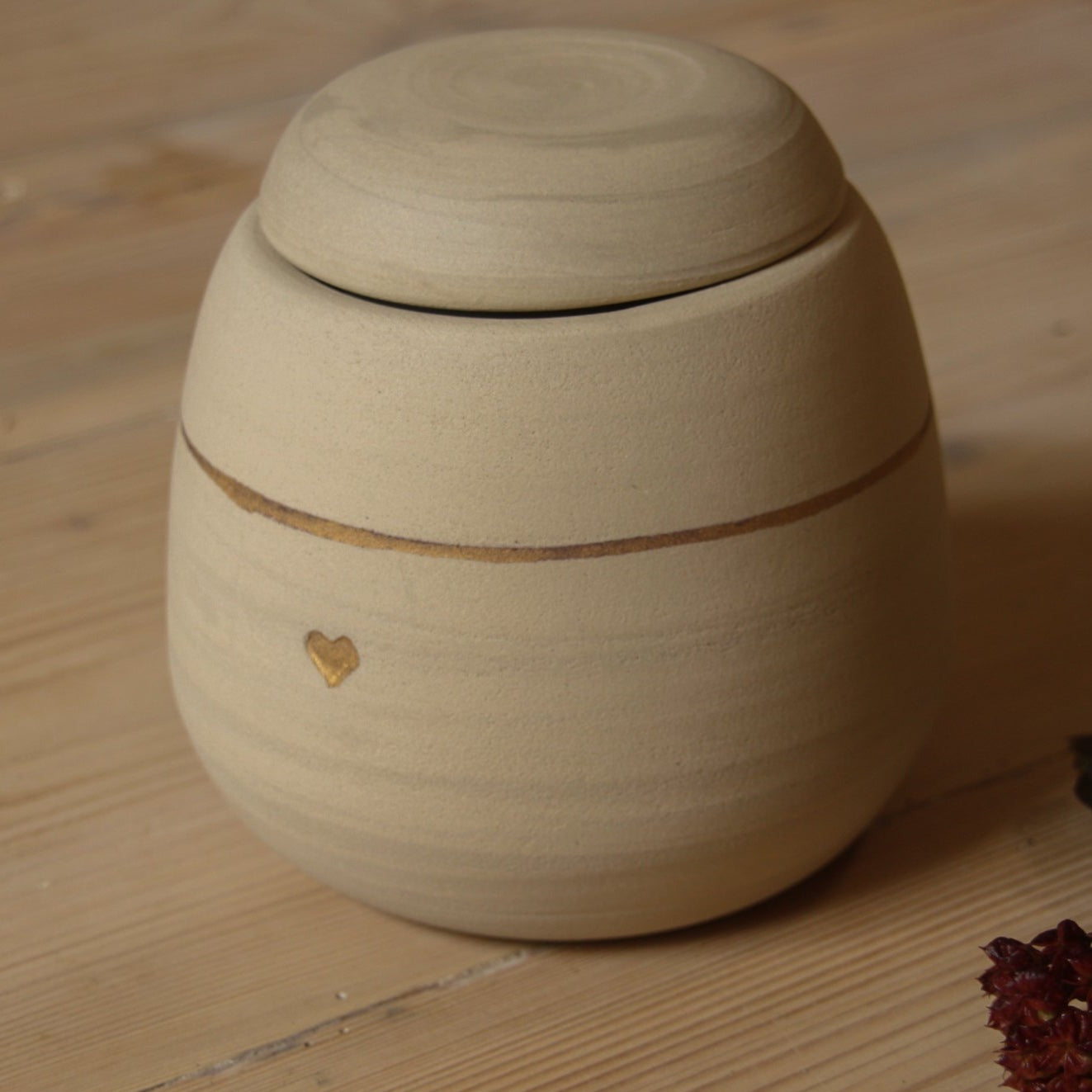 Medium, Large size handmade ceramic urn, with gold Heart or paw stamp accent.