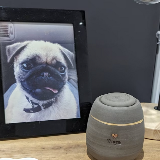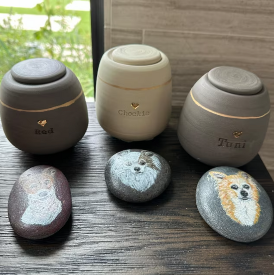 I make the urns by hand on a wheel, I draw every detail with a brush, each letter is stamped separately, measured and centered by eye. each urn is unique, specially created for your pet. Therefore, the urn made for you may differ from the one shown in the listing pictures.