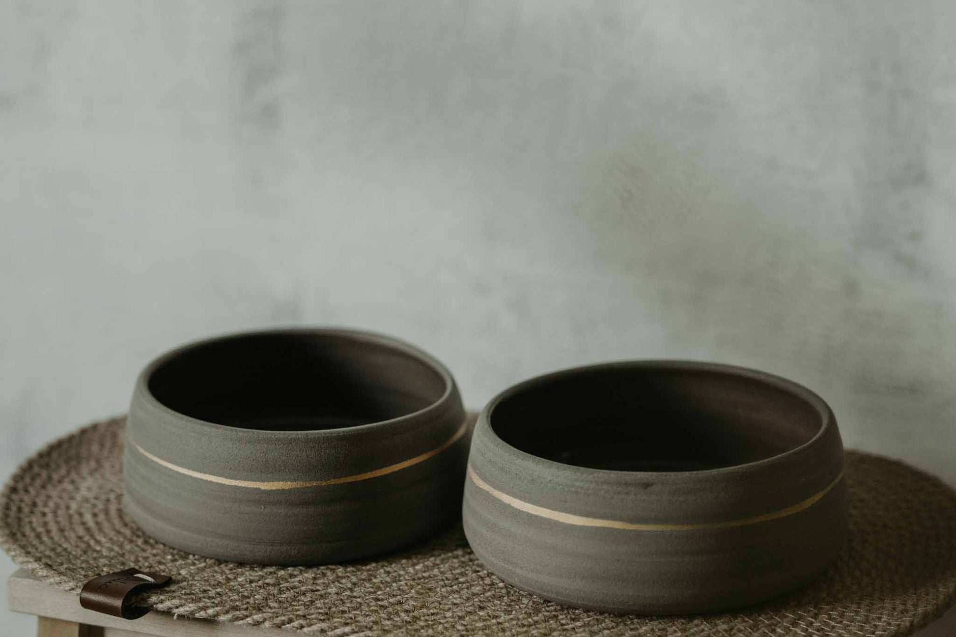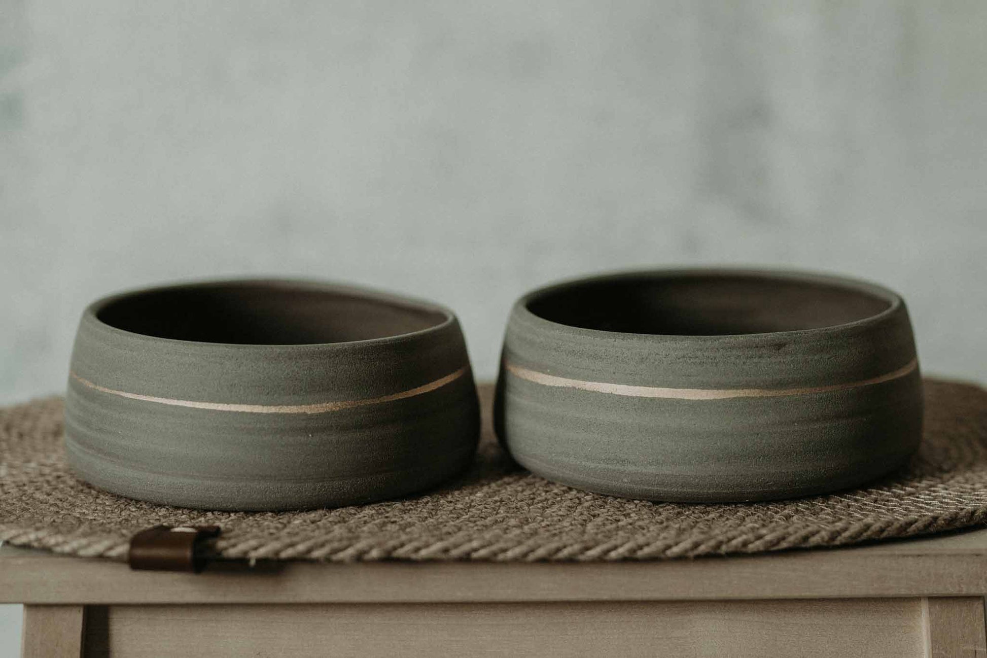 Made from stoneware and kiln-fired for durability and stability, each bowl is unique and individual due to the finishing and organic nature of working by hand. These ceramic dog bowls are made from simple grey stoneware and inside is glazed with transparent glaze (safe for your pet). They will look beautiful in any home!