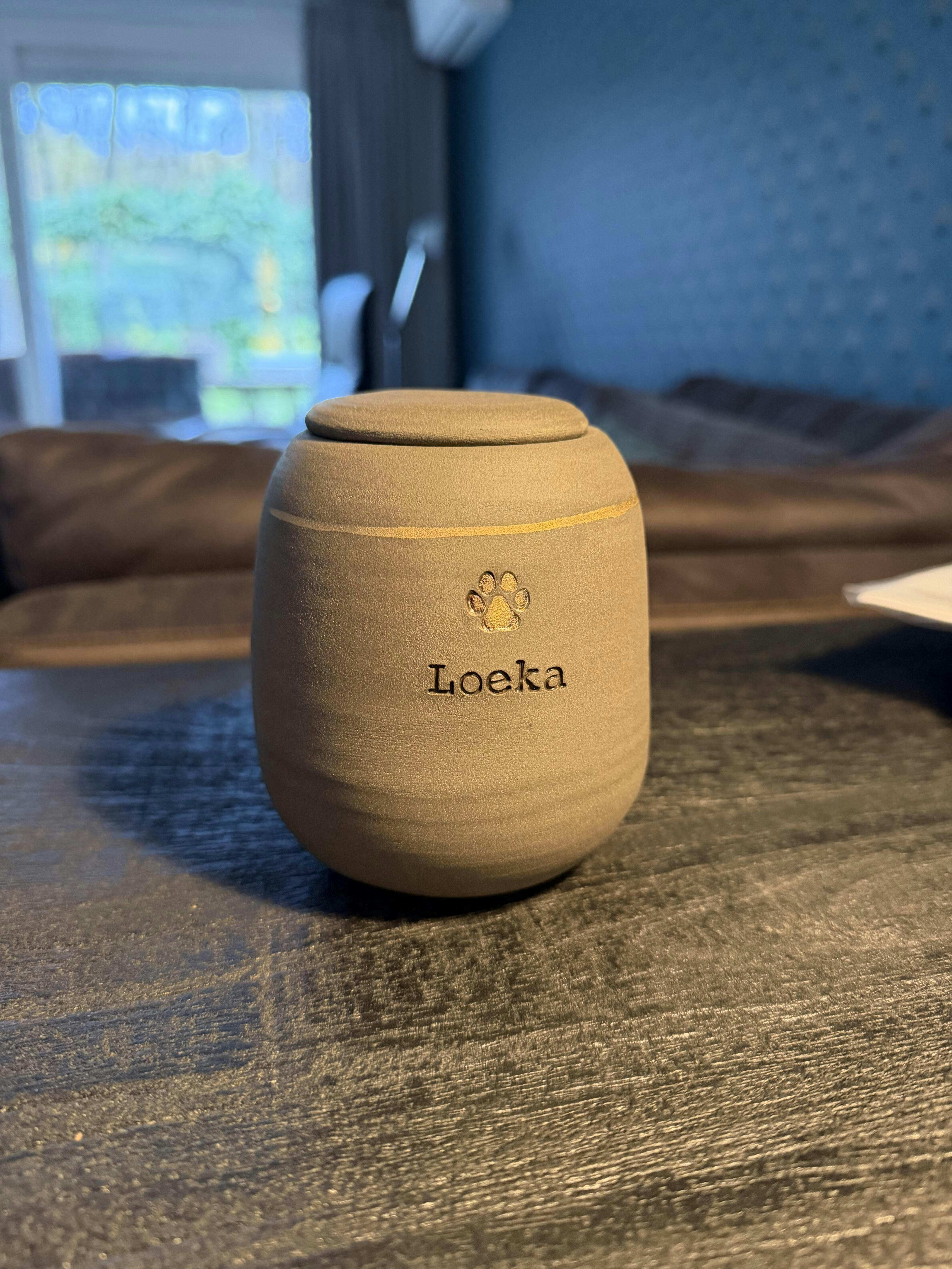 - Custom Gold Heart or Paw Stamp: Infuse love and elegance into the urn with a custom gold heart or paw stamp, adding a touch of sentimentality.